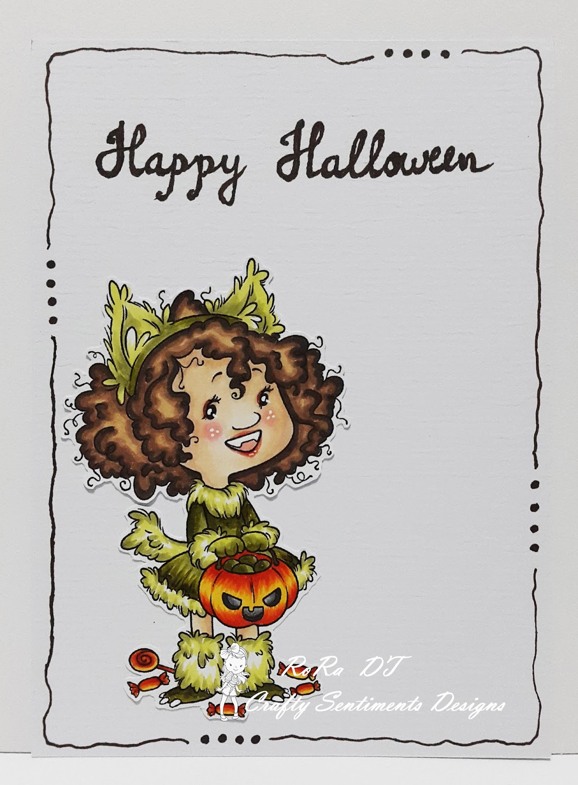 Hi everyone.. RoRa is here again for my first inspiration post this month.. Today I showcase Halloween Outfit, one of the cute new release images this month.. Colouring this super cute halloween image with copic marker.. and here's my simple card..